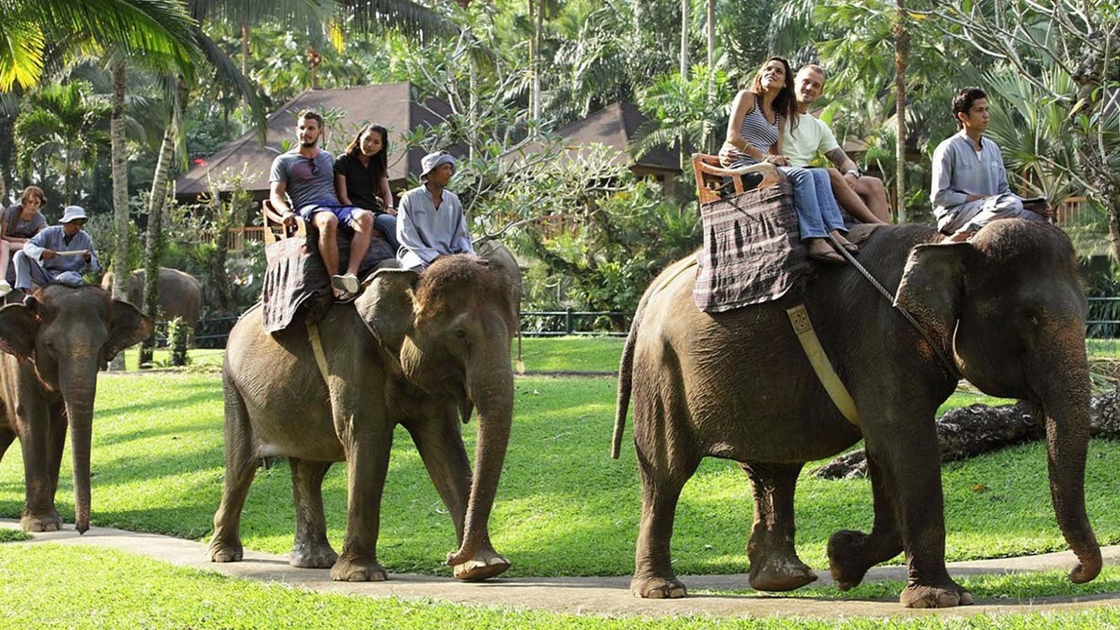 Main attraction : monkey forest, waterfalls, temples, rice terrace, traditional market, Elephant sanctuary, and volcano.